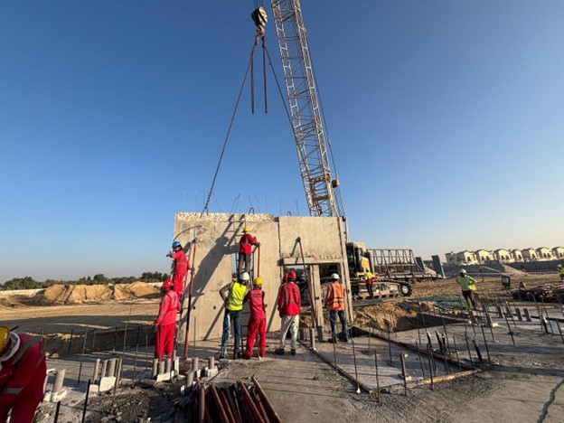 Exeed National General Contracting has reached an important construction milestone with the successful installation of the first precast panel at Olvera, Bloom Living – Phase 6. This achievement marks the transition from substructure to superstructure works and represents a key step forward in the project’s delivery programme.